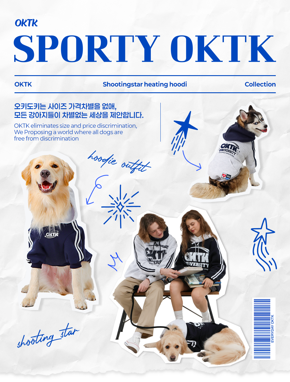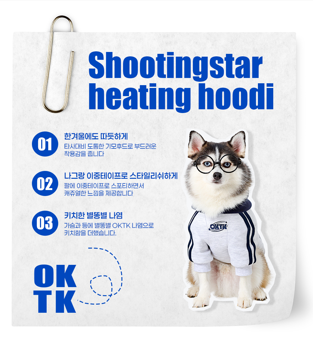 도톰한 기모가 들어있는 슈팅스타 나염 후드입니다 팔에 테이핑 포인트로 스포티한 느낌을 더했습니다. 보호자와 커플룩으로 매칭할수 있습니다.