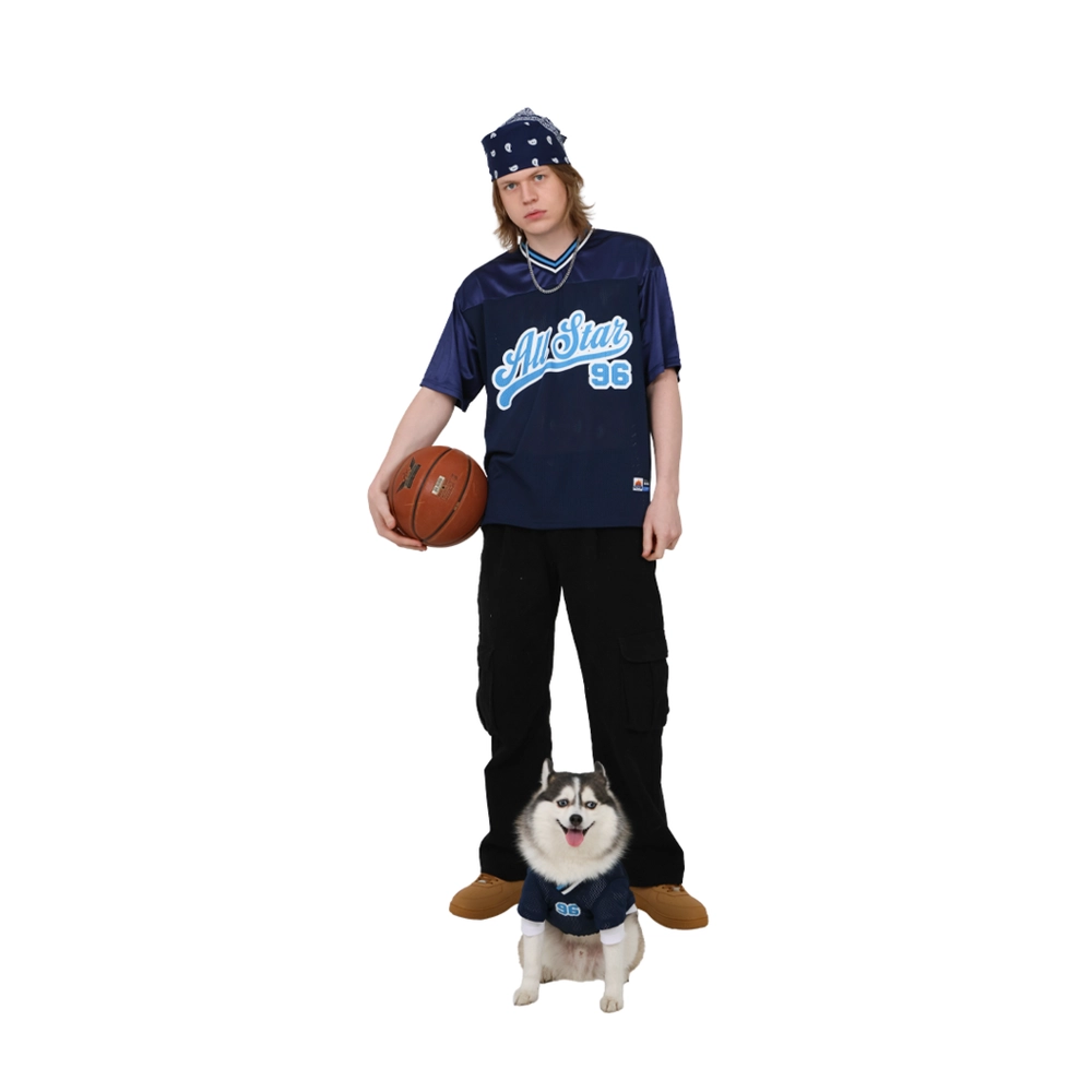 메쉬소재의 레이어드된 반팔티셔츠가 포인트인 베스킷볼 티셔츠 입니다